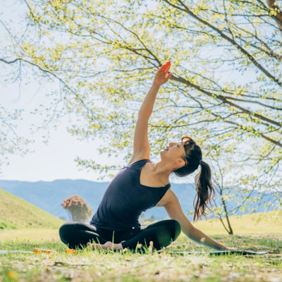 季節によって違うアロマの香りを楽しみながら行います。寝てできるポーズと座ってできるポーズが中心のリラクゼーションクラスです。アロマの香りが苦手な方は、香りの量を調整しますのでご相談ください。